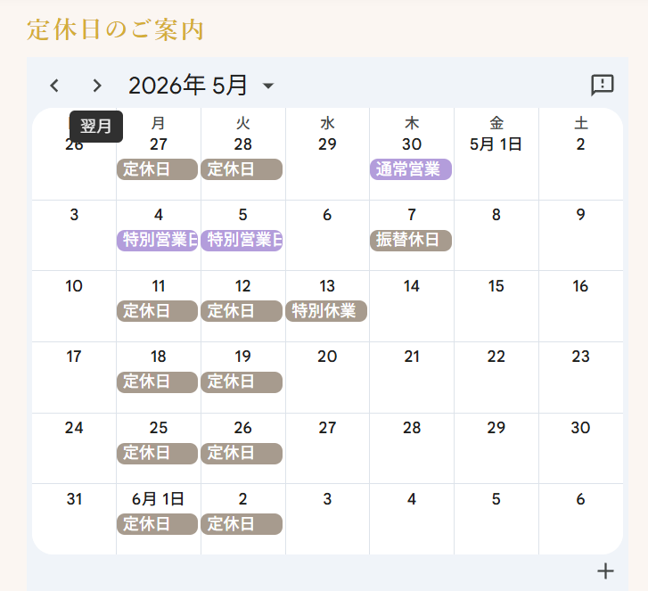 5月4日月曜日(祝) 特別営業日